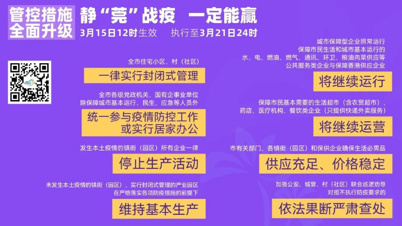 按照最新通告要求,我们都将进入静生活、慢生活当中。我们相信,只要我们坚定一条心、每人贡献一份力,这一场静“莞”战疫、一定能赢!请所有朋友都参与到这一场战疫攻坚战中来,把信心和力量传递给这座城市的千万人口!暂停是为了更好地出发,让我们齐心协力,共同打赢这场疫情防控硬战!