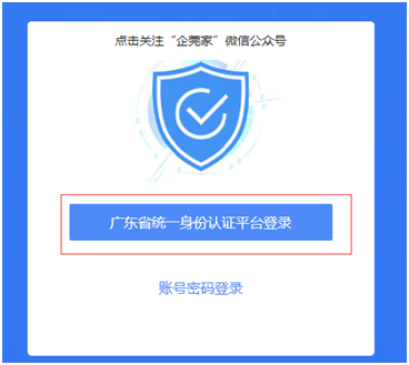 输入“企莞家”东莞市企业公共服务平台网址(https://im.dg.gov.cn/pt/dgesp/dg-cus/),通过广东省统一身份认证平台登录。
